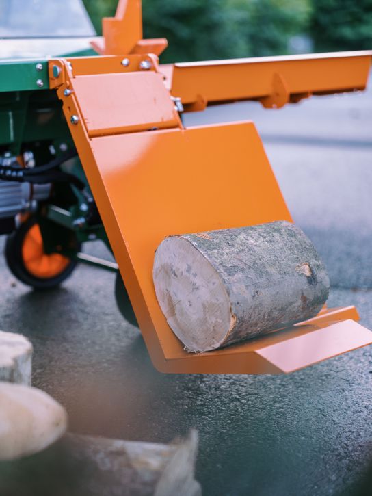 Polly: A hasítókés hidraulikusan beállítható a különböző faátmérőkhöz. Ön pedig egységes hasábokat kap. - Kényelmes fatárolásA hasítási folyamat után a fahasábok a tágas tárolóasztalon parkoltathatók. Ha még több helyre van szüksége, válassza a nagyobb, „Large” változatot, amely még nagyobb asztallal és további kezelőoldali tárolóhellyel van ellátva.