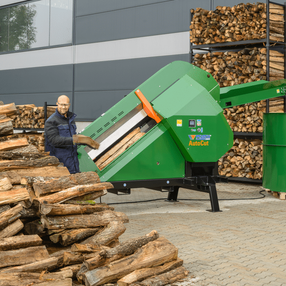 Ergonomsko nalaganjeAutoCut omogoča posebej udobno rezanje drv. Upravljavec nalaga metrska polena v mirujoči predal na udobni delovni višini 100 cm, žaga pa jih nato avtomatsko spremeni v polena želene dolžine.